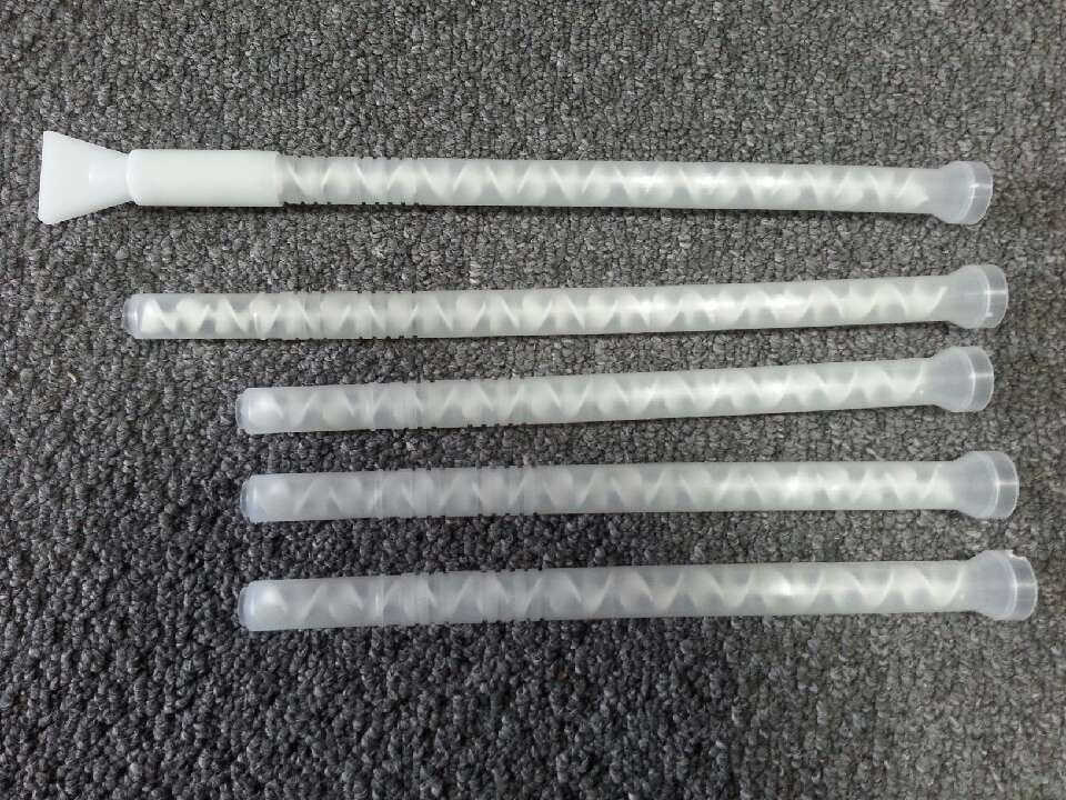 混合管是一種應(yīng)用在多流體攪拌的新科技產(chǎn)品,由一連串的上下左右旋葉片,依序相互垂直排列在套管內(nèi)組合而成。它無(wú)須借由外力驅(qū)動(dòng);僅利用流體本身通過(guò)混合器時(shí),進(jìn)行連續(xù)的切割與重合,將兩種以上的材料轉(zhuǎn)化為均勻的混合液。
